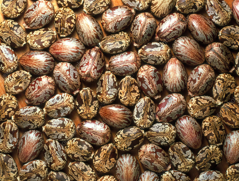 Castor seeds are oval, glossy seeds with a distinctive mottled appearance. They contain 45–55% oil, making them one of the richest natural sources of non-edible industrial oil.
